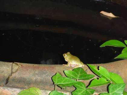 少し暗くなってからの出発です。闇に向かってどんどん進んでいきます。すると緊張が高まりちょっと怖くなってきたようです。でもどんどん進みます。山道に入り、二度目の珍客です。ちょっと和んだ後で、みんなで懐中電灯の火を落とし、漆黒の闇を楽しみました。