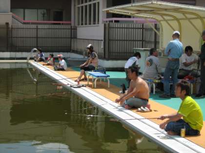 一緒に参加している子どもも多く,お父さんが手ほどきしながら釣っている様子