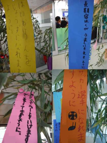 もう少し短冊を見てみましょう。「なでしこジャパン」「ヴァイオリニスト」夢は広がります。児童のおばあちゃんの願い事も入っていました。