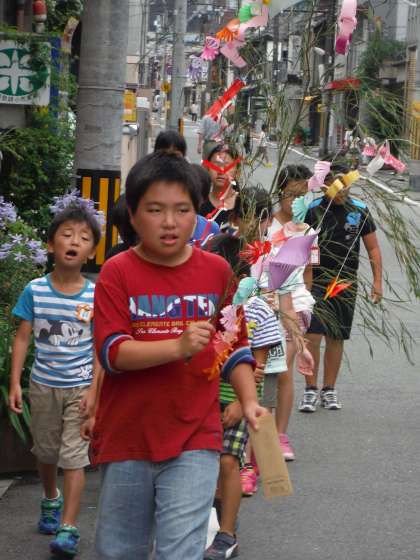 七夕集会の後、地域の方に笹飾りを飾っていただくお願いに行きました。少し緊張気味のリーダーを先頭に地域に出発しました。帰りはみんなさわやかに帰ってきました。