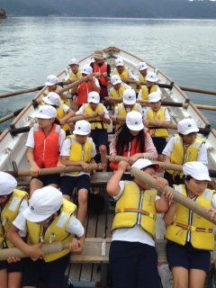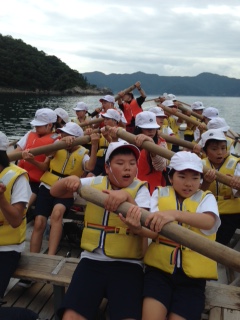 カッターでは、くらげの大群やトビウオを見ることができました。大きな声を出しながら頑張りました。写真から様子が伝わってきます。