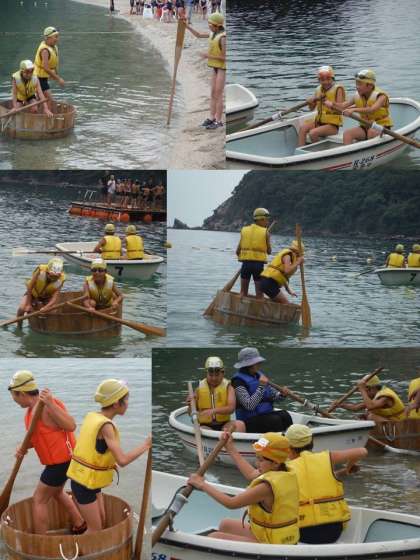午前のカッターのお稽古を活かし,ボートやタライがスイスイ進むとはいきませんでした。でも,転覆もまた楽しい時間を作りました。
