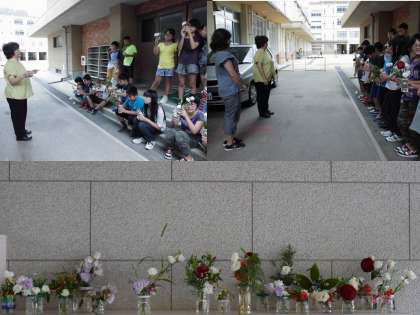 花育活動を行っておられる京都生花株式会社様にお世話になり,委員会活動の時間を使って,園芸委員会の子どもたちがミニフラワーアレンジメントに挑戦しました。学校の雑草園にある草花も使いましたが,きれいなお花もたくさんご用意下さいました。どのように植えていったらよいかアドバイスを頂きながら,一人一人がこだわりの作品を作り上げることができました。作った作品は,各教室にしばらく飾ってもらう予定です。ご指導ありがとうございました。