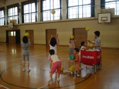 体育館の室温も上がり,30分も運動すれば子ども達はブルブルと汗をかき