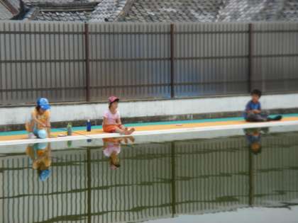 今回は,2・3・5年生が対象でした。日差しがとてもまぶしく,水面が光った