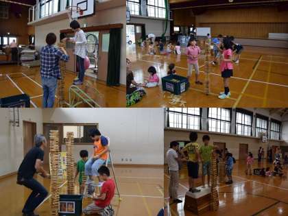9月19日に体育館で「カプラで遊ぼう」が行いました。カプラは,フランスの海洋松を使った「魔法の板」とも言われる白木の板を積み上げて遊ぶものです。インストラクターの方がいろいろな積み上げ方を説明して下さった後,それぞれの場所で高く積み上げたり,いろいろな形を作ったりして楽しく遊びました。実施にあたっては,西陣児童館,楽童くらぶ,育友会の皆様にお世話になりました。ありがとうございました。