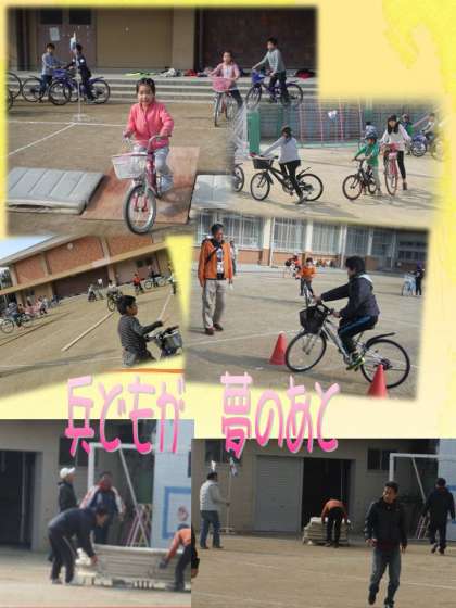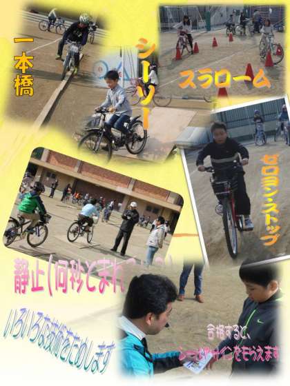 「ちゃりんこチャンピオン」を決める会が11月29日にありました。いろいろな競技に挑戦し、技をためします。練習の段階では「難しい」「できひん」の声が多く聞かれましたが、本番スタートと共に、どんどん挑戦していきました。自分の力にあったように挑戦していき、普段では味わえない自転車の動きを楽しみました。1年生も6年生も思う存分楽しめたのではないでしょうか。