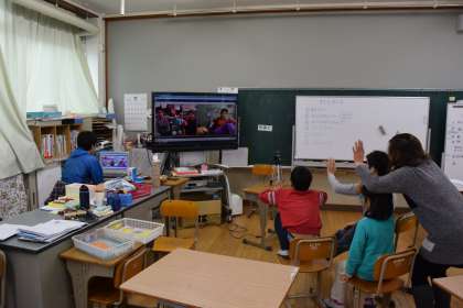 学習発表会でも入院中のお友だちの生出演がありましたが,今回は,落ち着いてテレビ会議を楽しむことができました。入院中のお友だちの誕生日ということもあり,おたんじょうびの歌,お誕生日カードの紹介と進みました。スリーヒントクイズでは,クラスのお友だちが出した問題に的確に応えていました。「ボディは,赤です。」「数字は5です」「車輪は,黒です」これで答えが分かりますか?答えは,「ジェームス」こちらは,全く分からなかったのですが,日常の遊びなどで,ヒントを理解しているんだなと思いました。しりとりも楽しんでやることができました。