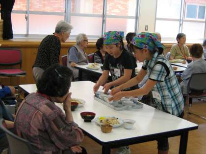 6名の5年生の女子が地域のお年寄りとの交流に参加しました。