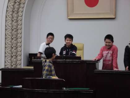 また、少しの間自由に見学する時間も設けられ、子どもたちが議長席に座って議長になりきったりする場面も見られました。とても貴重な体験をさせて頂きました。