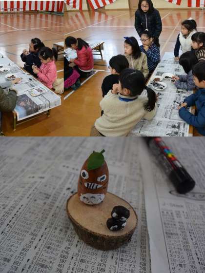 西陣児童館と楽童くらぶの共催で,全国を回っておられるヒゲキタさんによる「手づくりプラネタリウム」が行われました。プラネタリウムのドームから上映装置(キロスター)まですべて手づくりです。中が真っ暗になり目が慣れてくると,見事な星空が再現されていきました。もう一つは,手づくり3Dメガネを使ったKAGE-3Dです。様々な物体「スカイツリー」「ねこをかぶる」「宇宙ステーション」等々が目の前に迫り迫力満点でした。面白くて子どもたちにも笑顔が広がりました。どんぐりを使った「どんぐりコトトロ」も楽しそうに取り組んでいました。ヒゲキタさん,楽しい一時をありがとうございました。