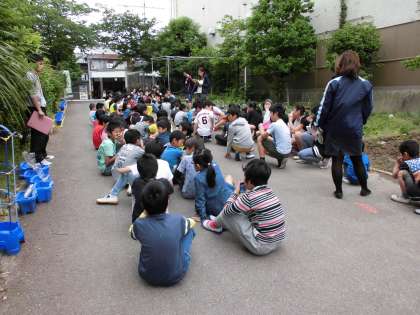 5月16日に避難訓練を行いました。地震の後,家庭科室から出火したという想定です。1年生は、はじめての避難訓練でしたがしっかり1次避難が出来ていました。4,5,6年生とコスモス学級児童は,6年生教室の横にある非常階段から外に出ました。今回は,家庭科室から出火という想定なので,学級園の近くで確認もしました。みんな落ち着いて1次避難,2次避難が出来ていました。