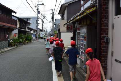 今日は,2年生が校区のふちをなぞるように歩きました。自分や友だちの家の近くに来ると「○○さんの家や」「あそこが自分の家」など教え合いながら歩いていました。お店もたくさん見つけました。