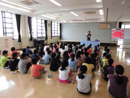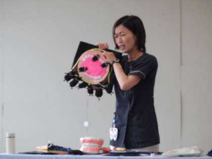 歯科衛生士さんから『歯みがき指導』がありました。歯ブラシ,コップ,タオルのご準備ありがとうございます。『8020』という言葉を知っていますか?と話が始まりました。これは,80歳の時に自分の歯を20本残すという意味だそうです。そのためにも,歯磨きの仕方が大切だということを教えていただきました。皆の口から入った食べ物の食べカスの歯垢には,バイ菌がたくさんついていて,溜まっていくと虫歯になってしまうという話を聞きました。その歯垢を溜めないためにも,歯ブラシの持ち方を教えていただき,「鉛筆を持つように」と教えていただきました。一番力の入らない持ち方だそうです。短時間ですがその持ち方でそれぞれ磨いてみました。「磨きにくい」「手がつりそう」などなど,感想が聞こえてきていました。最後に,学校歯科医の先生からも「家族皆で正しい持ち方で磨けるといいね。丈夫な歯が保てるように,しっかり歯磨きをしようね」とお話くださいました。ご家族皆さんで,鉛筆を持つ持ち方で,今日から歯磨きを頑張ってくださいね!