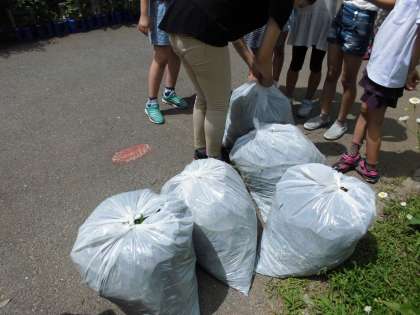 今日は,朝から梅雨が明けたのかと思うほどの天候と気温のなか,理科の学習で学級園の畑の草抜きをしました。皆,汗をブルブルかきながらきれいにしてくれました。他の学年の畑の草抜きもしてくれました。何を育てようかな?といろいろ考えています。