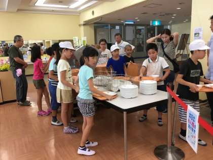 まずは,昼食。お野菜もとろうね。しっかり腹ごしらえをして,午後の活動に備えます。午後は,2つのグループに分かれて釣りとスノーケリングに取り組みます。