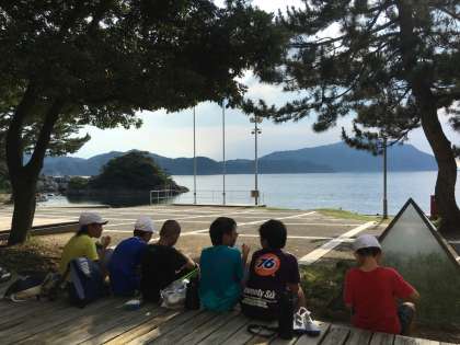 活動の後はアイスクリームタイム。海を見ながらほっこりしてます。みんな元気にしています。