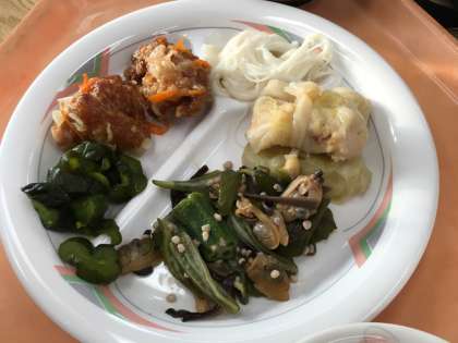 バイキングでの夕食です。理想は,上の写真ですが,こんな感じは,少なかったようです。今年の子どもたちは,好きなものだけとなったら,もう1枚のような子たちが多くてびっくり。