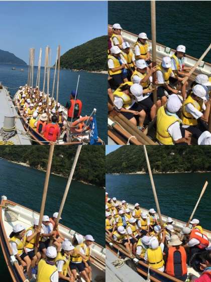 カッター体験はじまりました。約一時間説明を聞いた後,いさ出航。