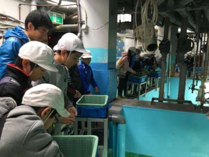 ペンギンタッチの後は,水族館の裏側を体験 エサの話を聞いた後,エサやり体験をしました。