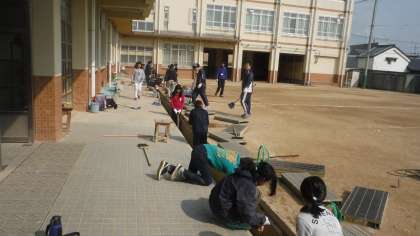 卒業を前にして6年生が,「学校をきれいにしよう」と普段,中々掃除できない運動場の側溝をあげて溝掃除をしてくれました。およそ3年ぶりだったのですが,たくさんの砂がつもっていました。とてもきれいにしてくれました。6年生のみなさんありがとう。