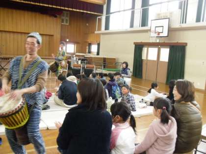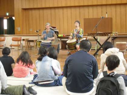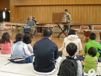 アフリカのモロッコの太鼓と木琴の楽器でアフリカンドラムライブが体育館で行われました。すばらしいリズムでとちゅうから観客の子ども達がおどりだすほどでした。なかなか見られない音楽でした。ありがとうございました。