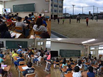 学級目標を話し合って決めているクラス,宿題の読書カードの書き方を聞いているクラス,給食の準備の仕方を聞いているクラス,教科の学習が始まっているクラス様々でしたが,みんな先生方の話をしっかり聞いて取り組んでいました。