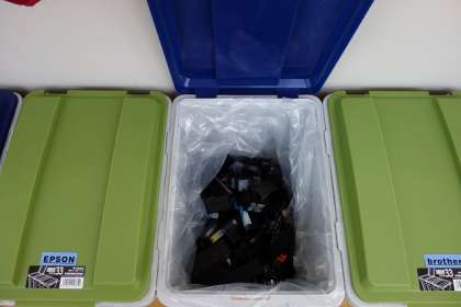 職員室前のインクカートリッジのリサイクルBOXがリニューアルしました。インクカートリッジはリサイクルして新しいカートリッジを作ったり、違う製品に変えたりできます。ご家庭で使用済みのカートリッジが出ましたら、お子たちに持たせていただき、回収BOXへ入れてください。よろしくお願いいたします。