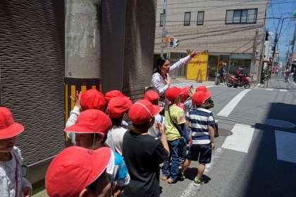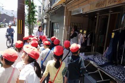 生活科の学習で、「まちたんけん」をしました。校区内にあるお店を探してまわり、お気に入りのお店を見つけました。知っているお店や行ったことのあるお店などを見つけると、一生懸命友だちに説明する姿が見られました。学校から遠いところは、初めて踏み入る子ども達もいたようで、看板を見上げながら興味津々に探検することができました。