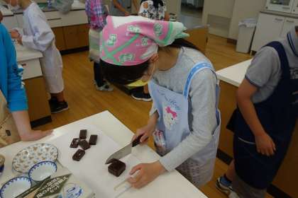 5年生は、何日か前に職員室を訪れ、教職員に招待状をもってきてくれました。一緒にだんらんの時間を過ごすお誘いを受けた教職員は、この日を楽しみにしていました。おいしいお茶を入れることができるでしょうか。