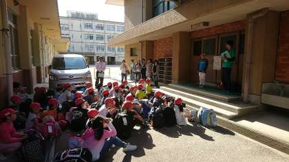 いよいよ、みさきの家への出発です。予定通り司会係の進行で出発式を行いました。初めの言葉もしっかりと言えました。みんなの心を一つにして、いってきます。