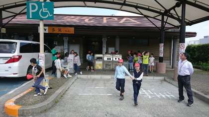 2回目の休憩です。伊勢自動車道の多気パーキングエリアに着きました。バス移動での疲れが少し見え始めた子どもたち。でも到着を楽しみに元気いっぱいです。