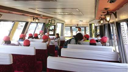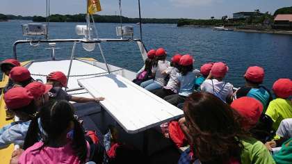 賢島駅に到着し、そこから船に乗ってみさきの家に向かっています。初めて船に乗る子どももいるようで、ワクワクしています。