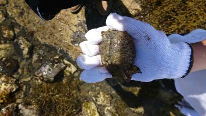 カニ、うみうし、ヒトデなど、磯にはさっきまで海底にいた生き物たちがたくさんいました。子どもたちはだんだん見つけるコツや捕まえるコツをつかんでいきました。