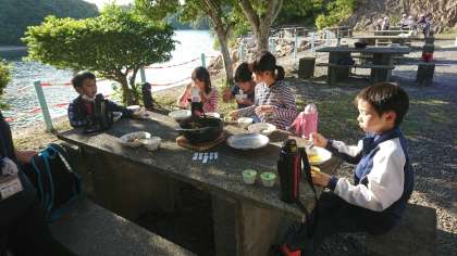 できあがり!みんなで作った「すき焼き風煮」です。少し肉が固まっていたり、少し味が薄かったり、野菜が固かったり・・・でも、「みんなで作った」すき焼き風煮は、最高の味がしました。自然と笑顔がこぼれます。「協力」の大切さを、また感じた活動だったのではないでしょうか。