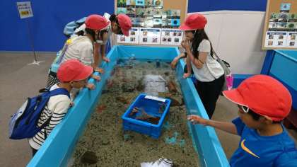 最後の最後まで人気だったのは、やはり魚と触れ合うコーナーでした。中でもドクターフィッシュには水槽が見えないほど人だかりができていました。