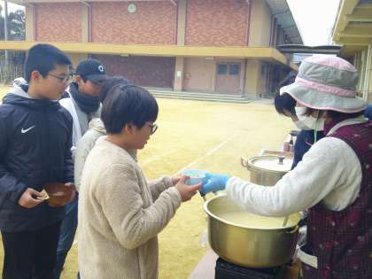 お雑煮、きな粉餅、あんこ餅、大根餅と、種類もたくさんあり、たくさんの人でにぎわいました。子ども達もたくさんおかわりしていました。