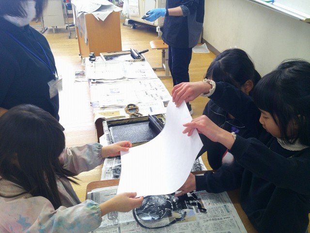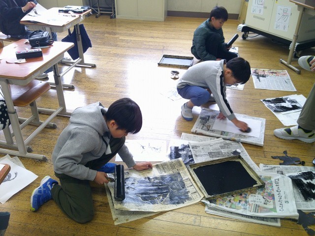 今日の5・6時間目はいろいろな学年が版画に取り組んでいました。いい作品に仕上げたい!という気持ちの方が大きく、手や服が汚れるのを気にせずに集中していました。完成が楽しみです!