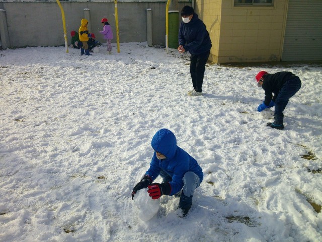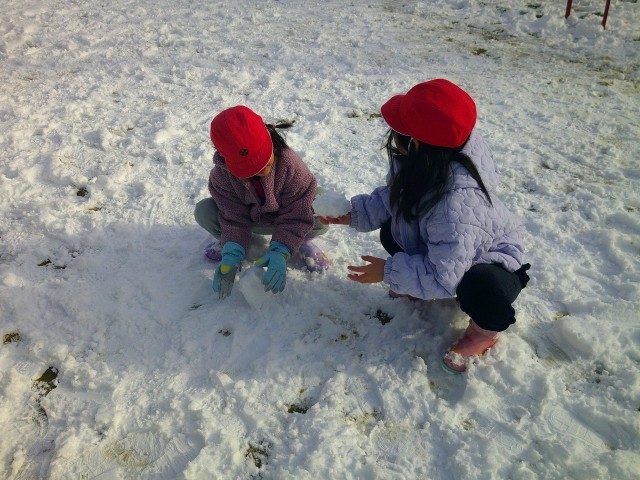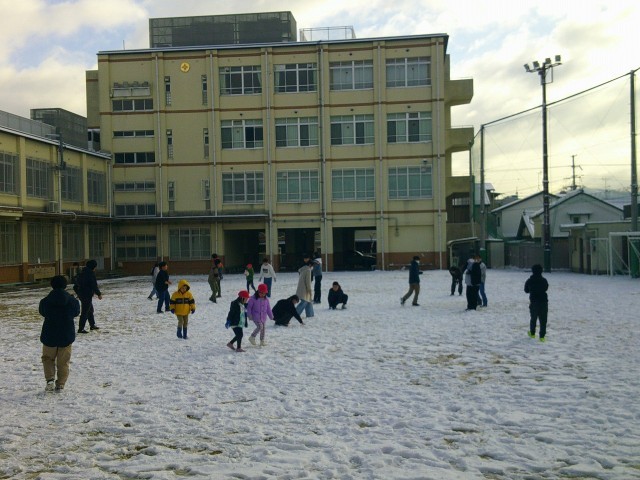 朝休みはたくさんの子が運動場に出ていました。1時間目も運動場で雪遊びをする学年もありました。運動場は、日当たりがいいのか、すぐに雪が溶けていきます。今しかできない雪遊びをたくさん楽しみました。
