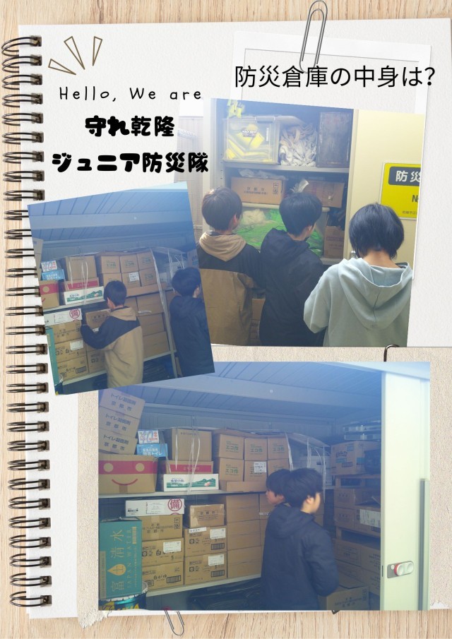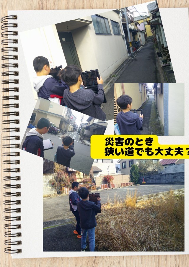 5年生は2時間目の「総合的な学習の時間」にいろいろなところへ向かい、実地検証をしました。「守れ乾隆 ジュニア防災隊」と題して、乾隆小学校区の防災について学習しています。それぞれの子どもたちが課題をもち、実際に見ることにしました。防災倉庫を開けてもらい、何がストックされているのか調べる班もあれば、校区に出て、狭い道の様子を確かめる班もありました。狭い道での車は、なかなか小回りが利きづらく、「奥まで消防車が入れるのかな」「避難がしっかりできるのかな」という疑問がわきます。これからもどんどん学習を深めていきます。