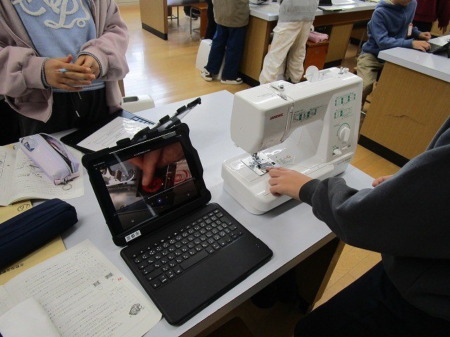 今日の5年生の家庭科では、ミシンに糸を通す練習に取り組みました。子どもたちは、先生から配られた手順書や動画を何度も確認しながら、班の仲間と声をかけ合い、協力して作業を進めていました。はじめて扱うミシンに少し緊張した様子も見られましたが、慎重にひとつひとつの工程を確かめる姿が印象的でした。