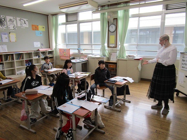 今日の3年生の外国語活動では、ALTのリリアン先生と一緒に、これまで学んできた表現や単語をUnit1から順に振り返りました。子どもたちは、これまでの学習を思い出しながら、パスポート(外国語活動用ノート)に英語を書き写す活動にも挑戦しました。「むずかしいな~」とつぶやきながらも、友達や先生に確認したり、自分のペースで丁寧に取り組んだりする姿が見られました。どの子も最後まであきらめずに活動に向かうことができ、積み重ねてきた学習の成果が感じられる時間となりました。