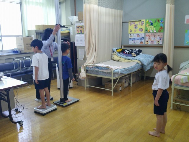身長と体重をはかる身体計測をしました。2年生スタートの身長と体重はどのくらいだったかな。立派な態度で測定ができたので、新しい保健室の先生にたくさん褒めていただきました。