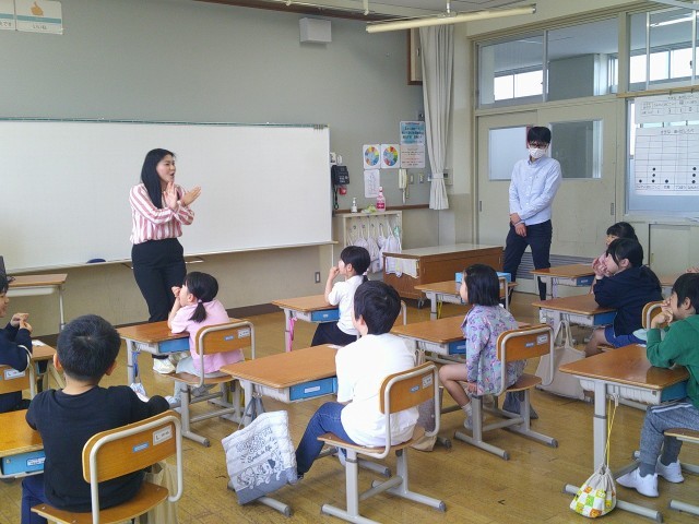 今日は、新しく乾隆小学校に来られたALTのラニーメイ先生と一緒に、外国語活動(英語)の学習を行いました。子どもたちは、初めて出会う先生との活動に少し緊張しながらも、笑顔で英語のあいさつをしたり、ゲームや会話に積極的に参加したりして、楽しく英語に親しむ姿が見られました。ラニーメイ先生とのやり取りを通して、英語で伝え合う楽しさを感じる貴重な時間となりました。