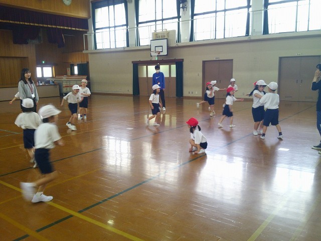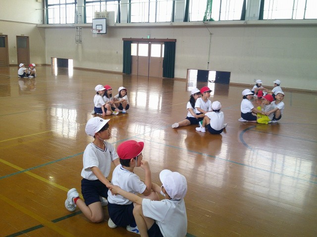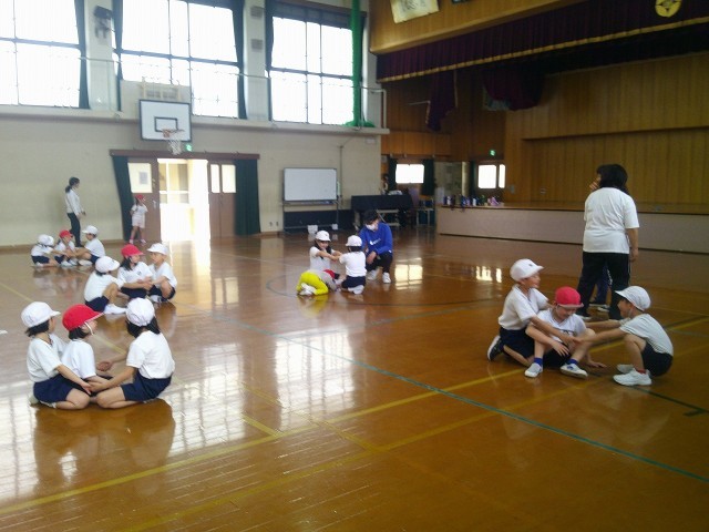 1・2年生は合同で体育をしました。今日で2回目の合同体育です。1年生は広い体育館や2年生と関わることに緊張している子もいましたが、一緒に体を動かしているうちに、2年生とも少し打ち解けて笑顔が見られました。2年生も1年生をリードしようと、一生懸命頑張っていました。