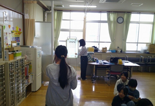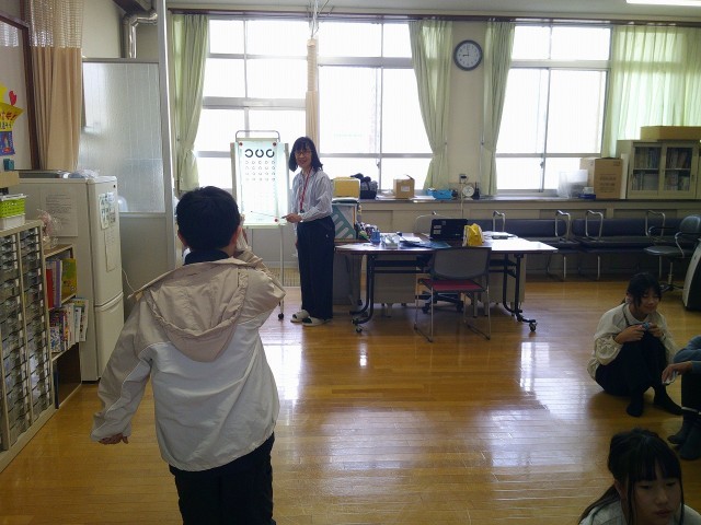 保健室で6年生が視力検査をしていました。静かに順番を待ち、滞りなく検査をしている姿はさすが6年生です。自分の体や心のことに関心をもって成長してほしいです。