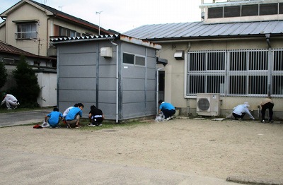 6月11日(日),施設利用協議会の皆様にお集まりいただいて,校内の草引きとグラウンドの溝掃除をしていただきました。