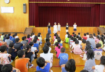 4年生のしょうらんタイムの後は,児童集会がありました。今月は,飼育委員会と保健委員会の発表です。