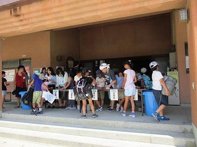 子ども達の受付が始まりました。先に受付を済ませた子が手伝ってくれています。