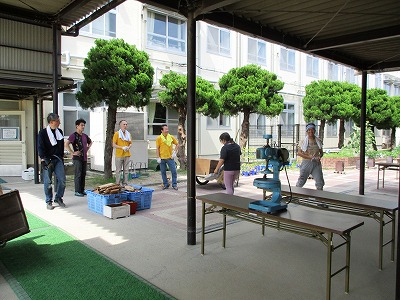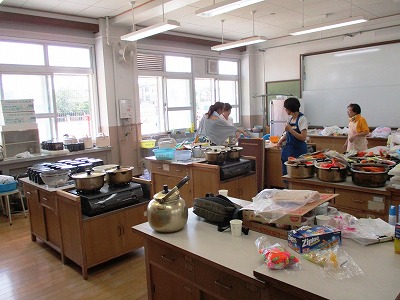 子ども達がクラフトや水遊びを楽しんでいる間に,おやつのかき氷や夕食のカレー作りの準備が着々と進んでいます。